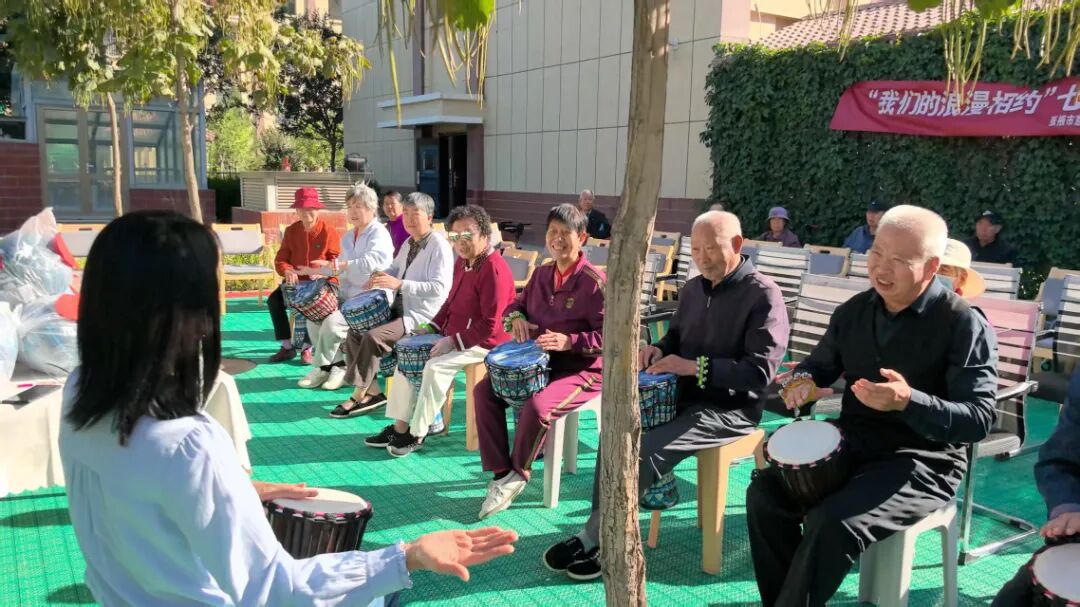 活動現場,伴隨著溫馨的音樂,非洲鼓表演拉開了活動序幕,輕快的節(jié)奏瞬間點燃了現場氣氛,將活動推向高潮。協(xié)會志愿者為老人們送去了紅棗枸杞汁、酸奶、面包等慈善慰問品。